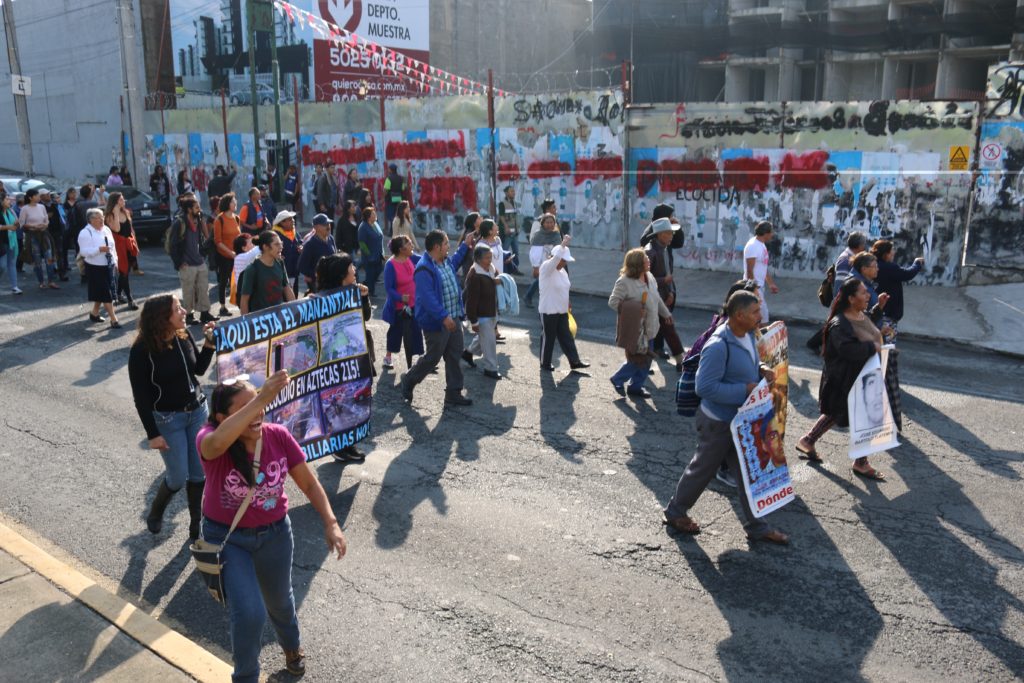 On August 31st, 2018, the General Assembly of Peoples, Neighborhoods, Communities and Pedregales of Coyoacan took Avenida Aztecas to mark the one-year anniversary of the second installment of their encampment in defense of water. The action was accompanied by neighbors affected by the real estate project of death, participants of various other social organizations and struggles in Mexico, along with compañeros and compañeras in solidarity with the struggle in defense of water. Below are some photos from the event.