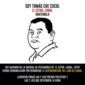 Cristobal Pop, Vicente Rax Pop, Eduardo Bin Poou, Juan Eduardo Caal Suram, Tomas Che Cucul and Marco Tulio Cuc, are human rights defenders and members of the Union of Fisherman of El Estor Izabal. They have been criminalized for denouncing the contamination of Lake Izabal being carried out by the nickel extractive company (CGN-PRONICO). On May 27th, 2017, they went to protest against the mining company and were repressed and criminalized leaving one fisherman dead, Carlos Maaz. Furthermore, the acts that occurred that day left a large list of people with arrest orders.