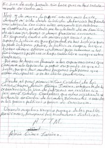 From prison number 5 in San Cristóbal de las Casas, Chiapas, Adrián Gómez Jiménez, member of the organization, the Voice of Indigenous Resistance. I send a combative salute to those who are resisting and struggling against the bad governments and a salute to the political prisoners and prisoners of conscious.
