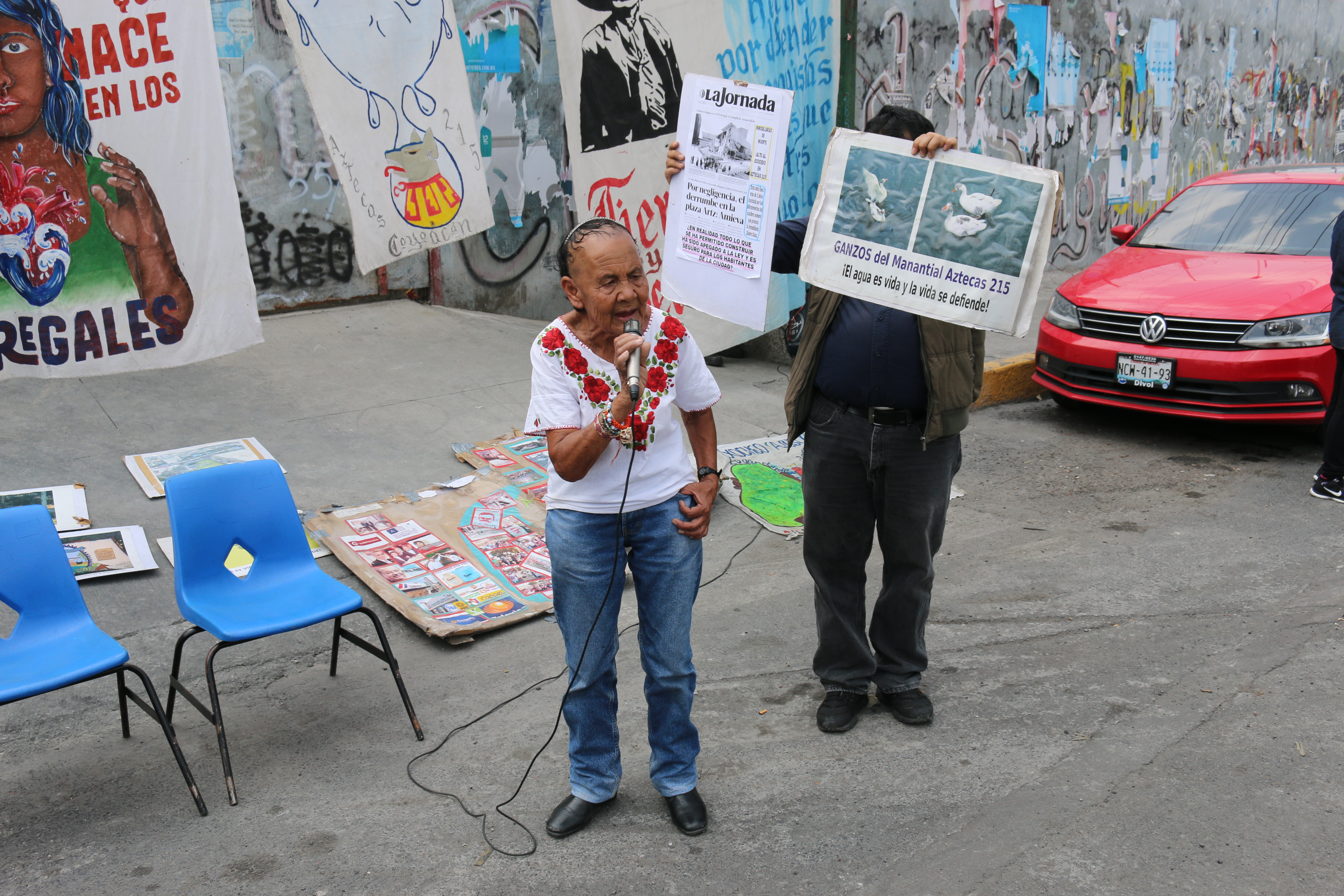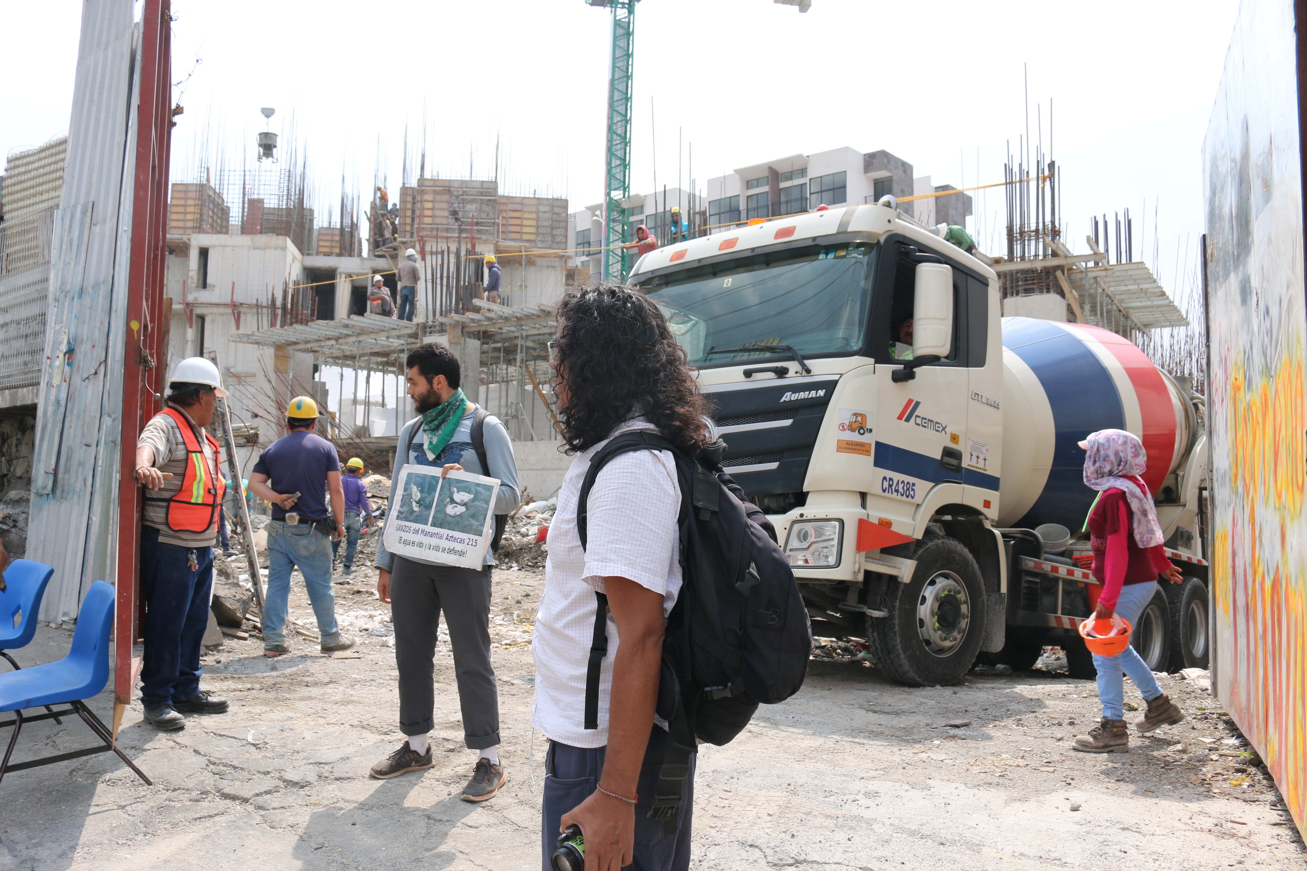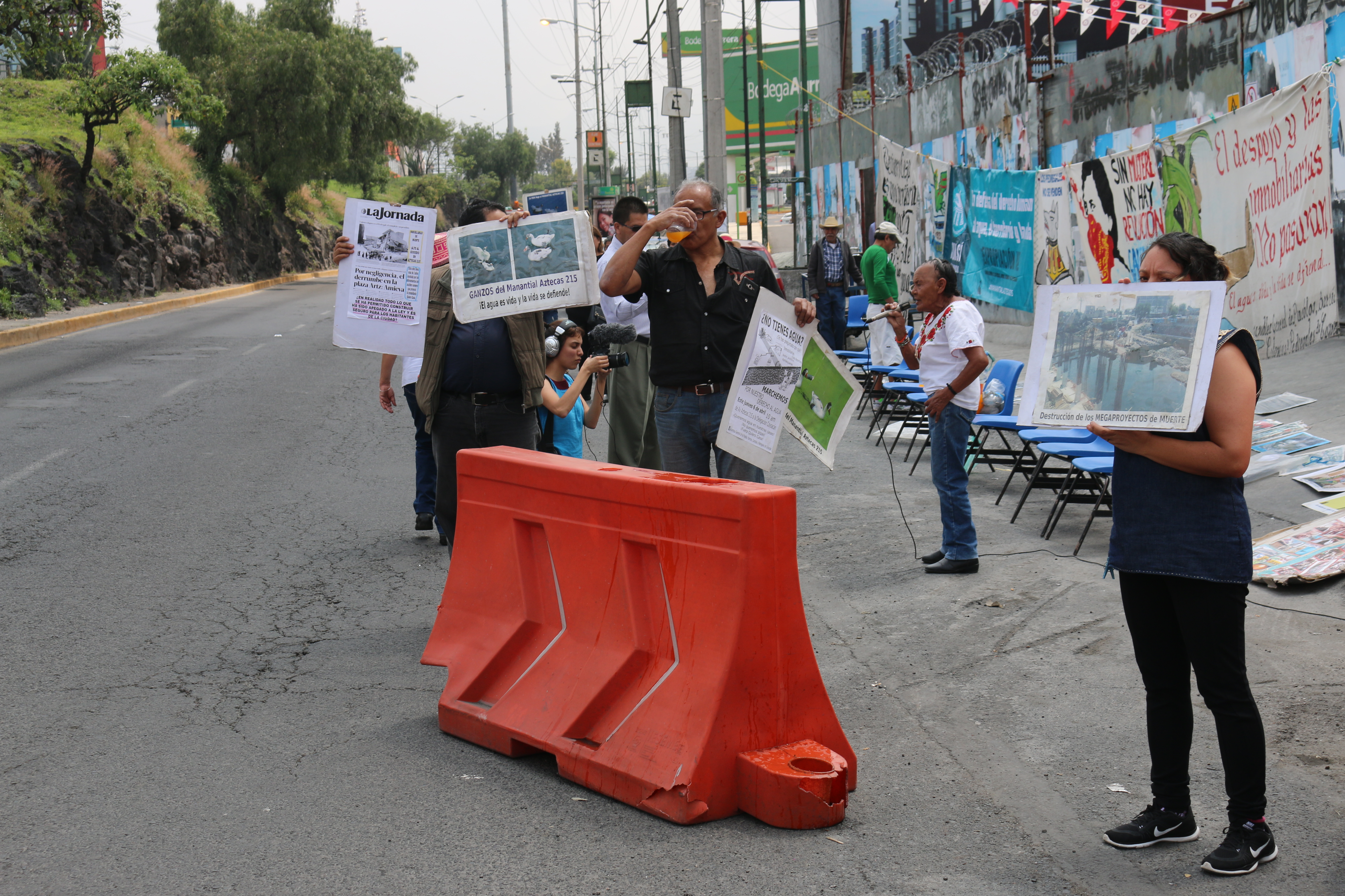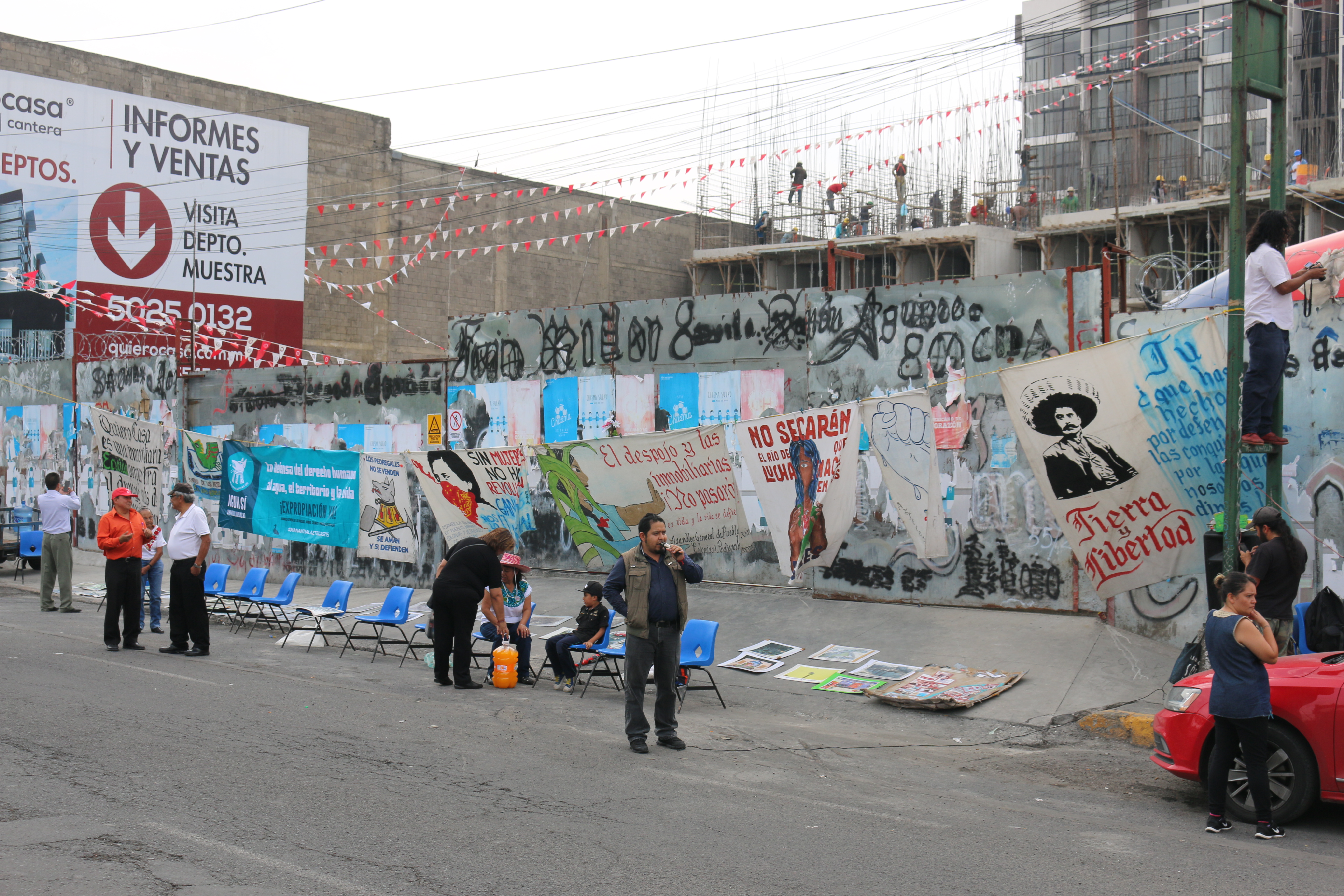 Today’s blockade marks the ongoing resistance and neighborhood self-organization against the real estate development project being built on top of a fresh-water aquifer in a city and neighborhood starved of water. The encampment in front of the real-estate development project is coming up upon its one-year anniversary on August 31st, after the prior encampment was evicted on December 5th, 2016. The neighborhood assembly is actively organizing against the real estate company, Quiero Casa, in its development project of 377 apartments and 683 parking stalls in the pedregales of Coyoacan in the south of Mexico City. This is both a project of ecocide, but also a project of ruthless gentrification, in a working-class neighborhood with a long history of community organization and resistance.