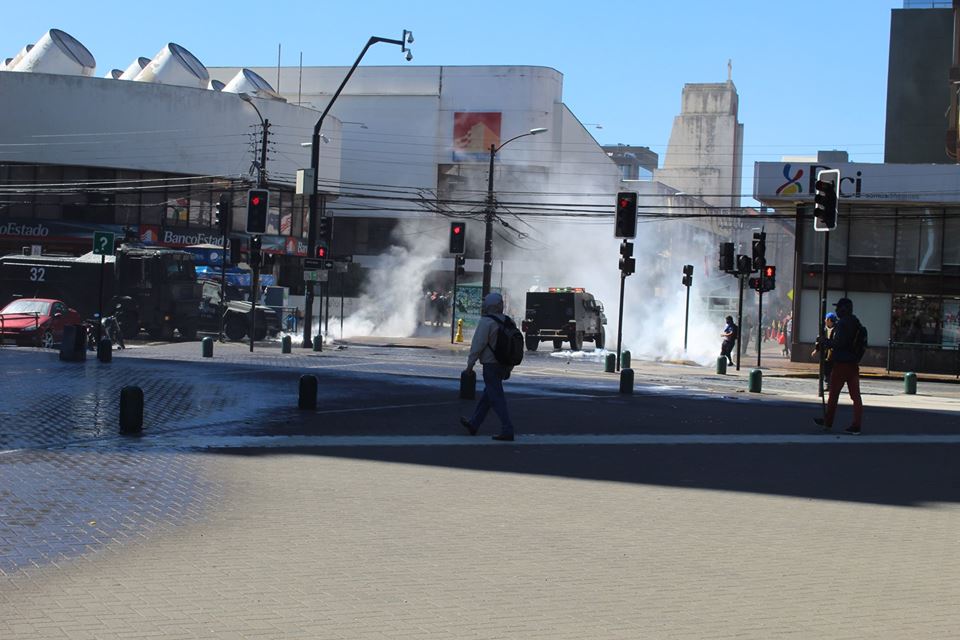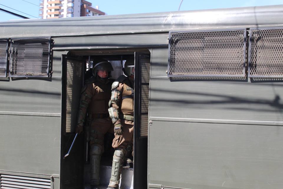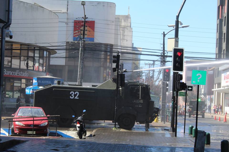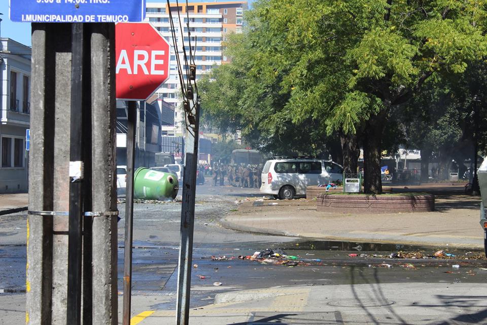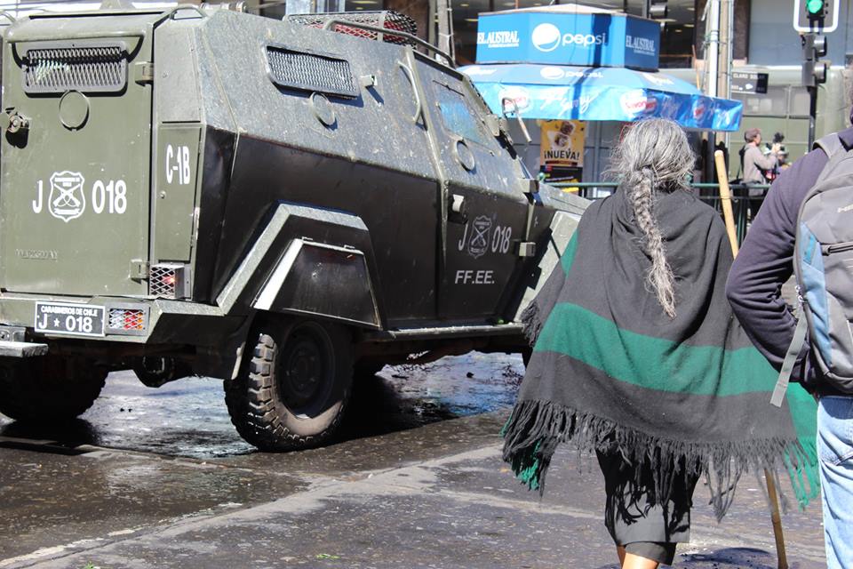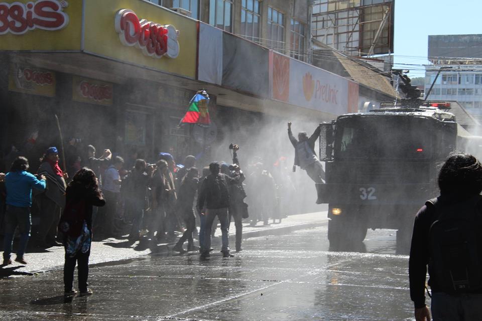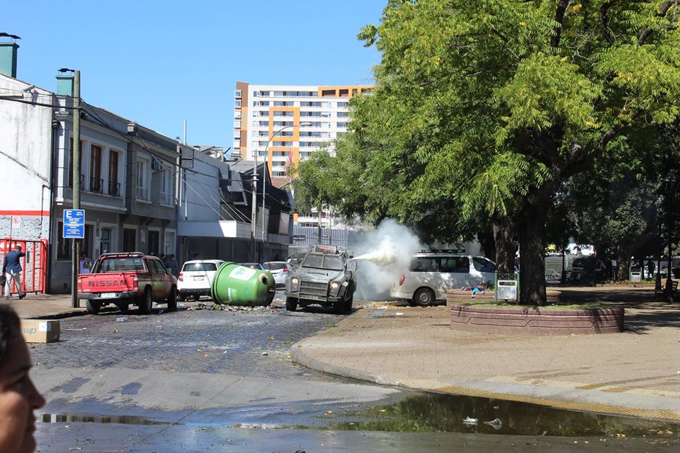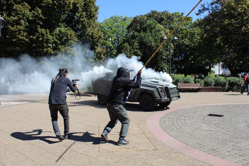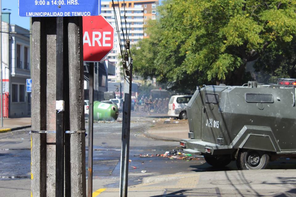 It was impossible to carry out the march today due to the unnecessary, racist and sophisticated police violence in the style of the School of Americas. The police carried out excessive and senseless operations against community members participating in the march. The repression resulted in arbitrary detentions against innocent people who were not even participants in the march. For example, there were Mapuche community members who were inside private vehicles who were detained. This was the case of Javier Llanca, who was violently detained from inside the private vehicle of the Werken of the autonomous community of Temucuicui, Jorge Huenchullan Cayul.