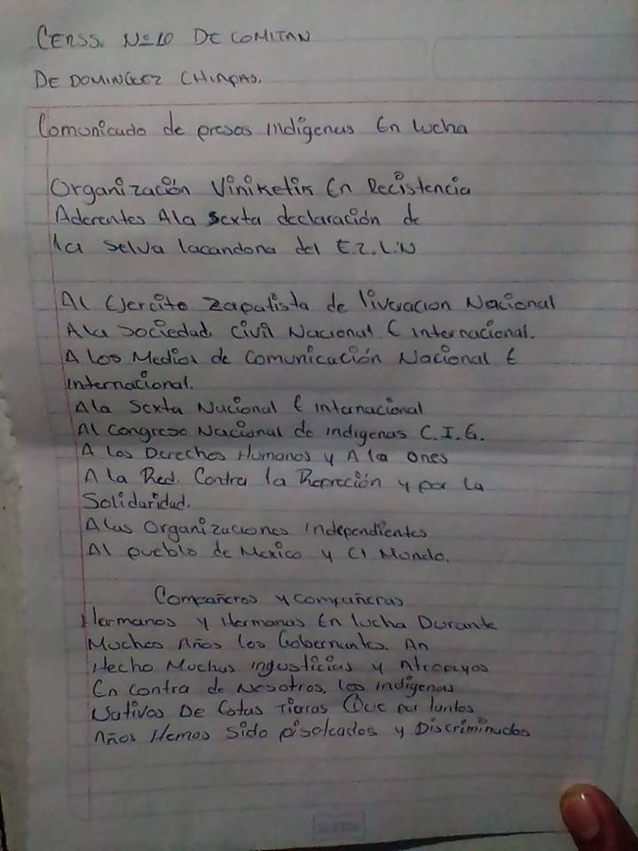 This communiqué comes from two members of the imprisoned organizing group, Viniketik in Resistance, who have decided to join the hunger strike of various Indigenous prisoners in struggle in the Mexican state of Chiapas. The original in Spanish was published by the Working Group, No Estamos Todxs, and can be found here.