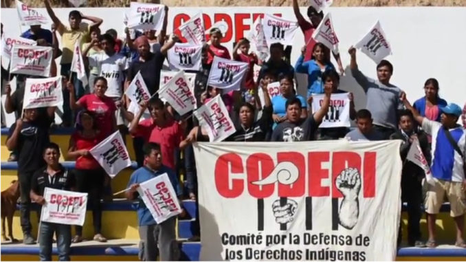 My name is Abraham Ramírez Vázquez, and I represent the Committee for the Defense of Indigenous Rights (CODEDI). We have a presence in more than 50 communities in the central valleys, southern Sierra, Coast and Istmo of the state of Oaxaca. As an organization, our principal project is to construct the autonomy of our peoples and defend our territories.
